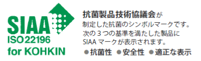 弊社の商品は、品質や安全性に適合した抗菌加工製品に与えられる「SIAA認証」を取得しています。